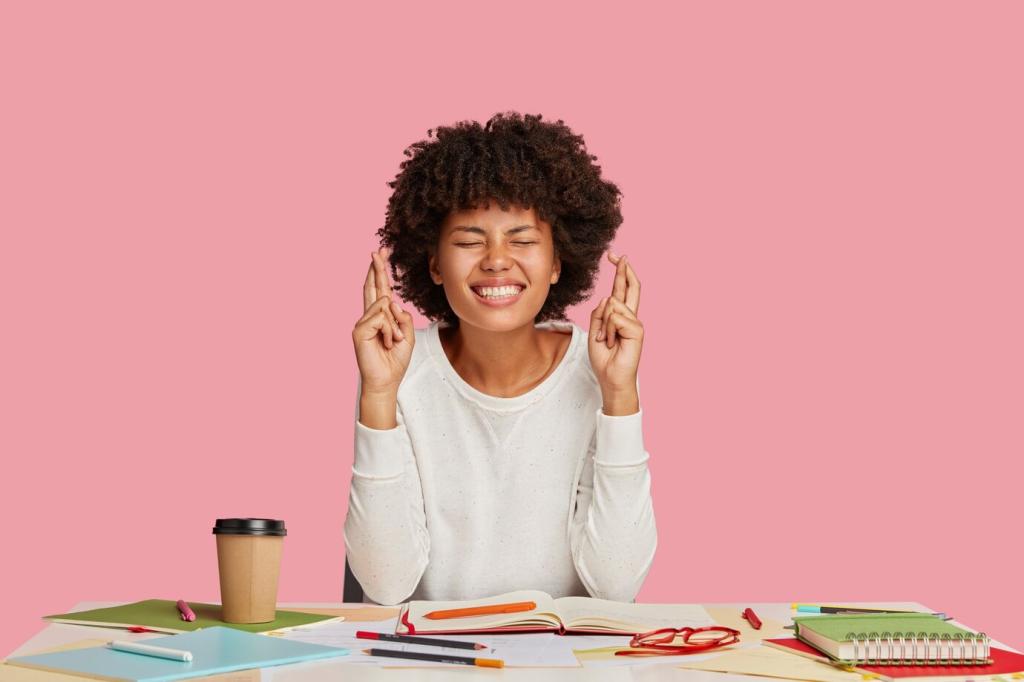 Richten Sie eine stille Ecke mit weichem Licht ein, laden Sie eine Atem‑App und formulieren Sie Ihre Absicht. Zwei Sitzungen täglich, je fünf Minuten. Kommentieren Sie, wie sich Körper und Kopf anfühlen und welche kleinen Hürden nach Tag zwei auftauchten.